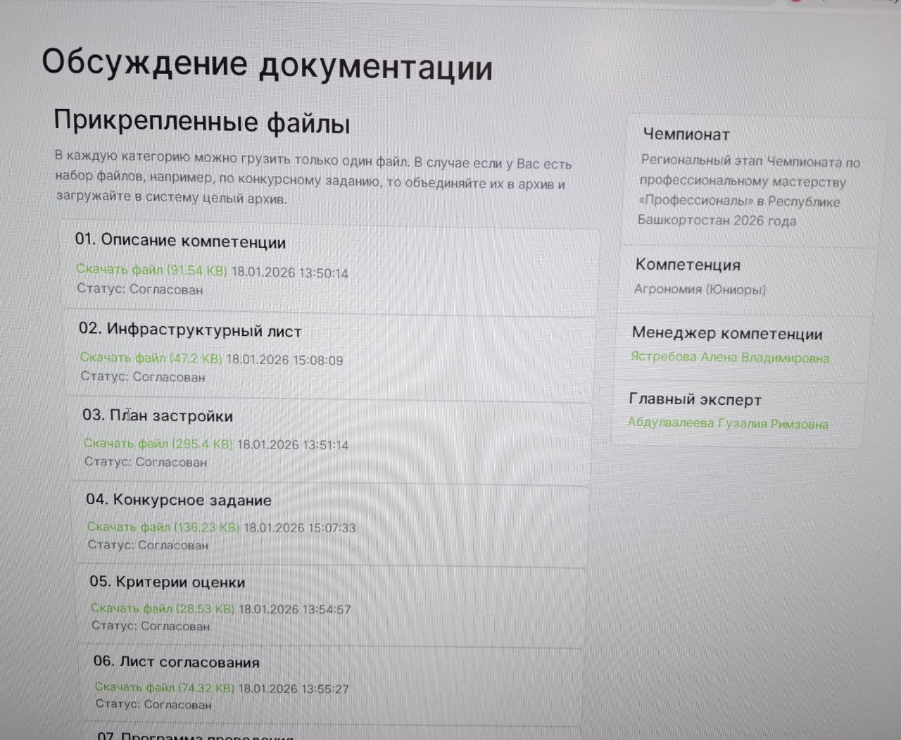 01-Описание-компетенции (Юниоры)Скачать 02-Инфраструктурный-лист (Юниоры)Скачать 03-План_застройки_Юниоры 2026Скачать 04-Конкурсное-задание (Юниоры)Скачать 05-Критерии-оценки (Юниоры)Скачать 07-Программа-проведения-(Юниоры)Скачать Приложение_3_Инструкция_по_охране_трудаСкачать