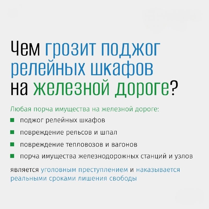 Чем грозит поджог релейных шкафов на железной дороге
